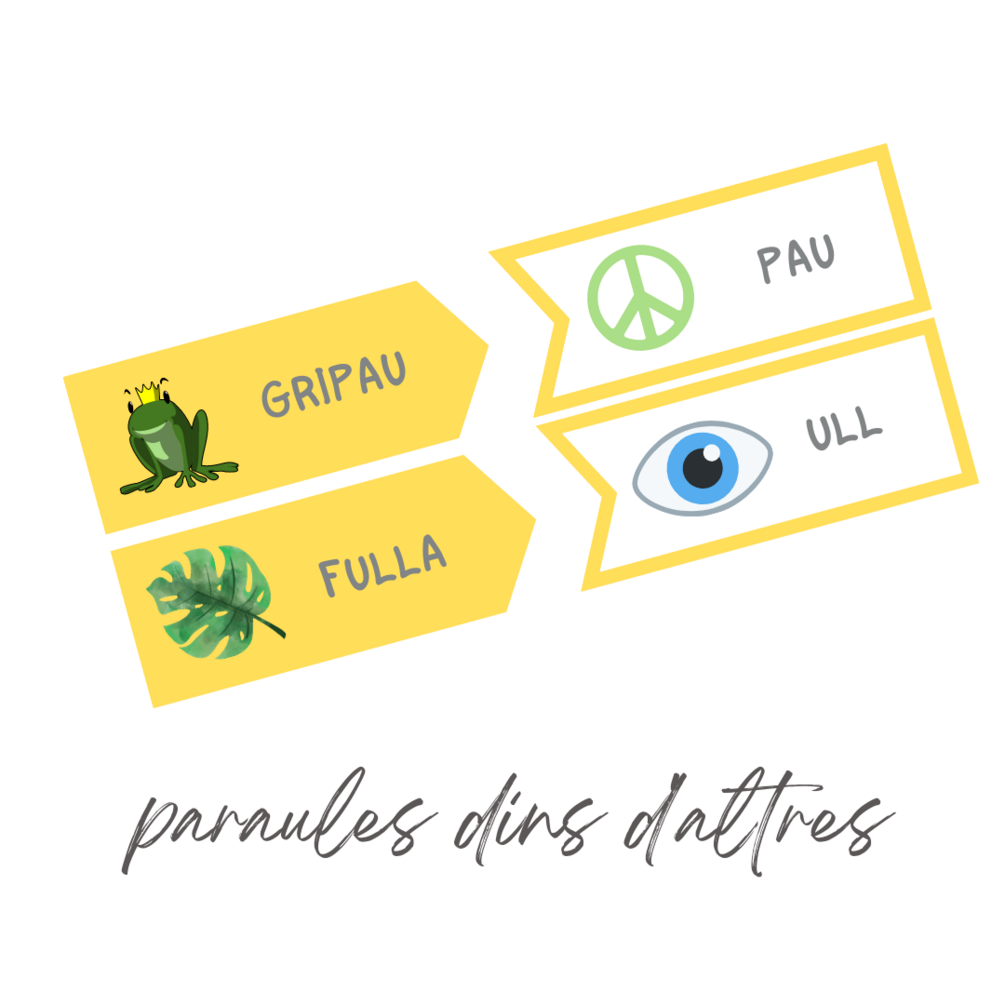 Busquem paraules amagades dins d'altres? L'ideal és fer-ho només amb imatges per entrenar l'oïda...però també s'inclou la versió amb paraula escrita pels més avançats!